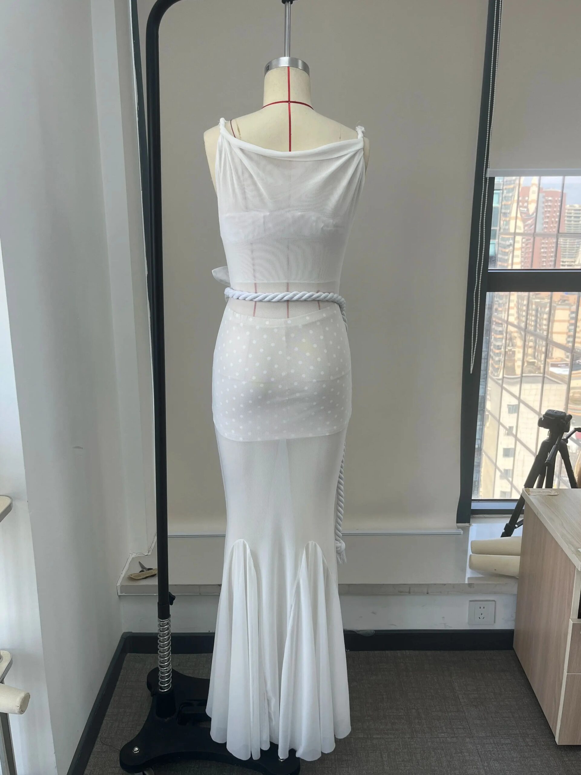 • Mesh Long Dress Women Summer Party Pintuck Dresses Ruched Cover Up Elegant Slim Maxi Vestidos Holiday Beach Robe