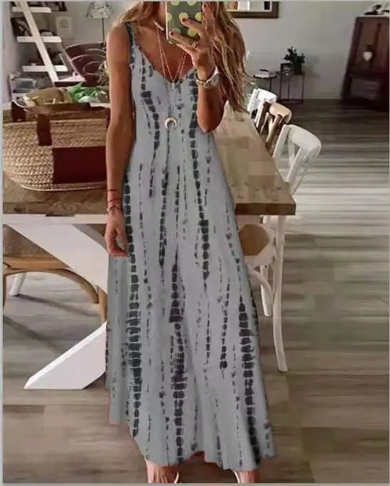 • Plus Size Europe and America Women’s Summer New Product Tie Dyed Print Large hem Hanging Strap Dress